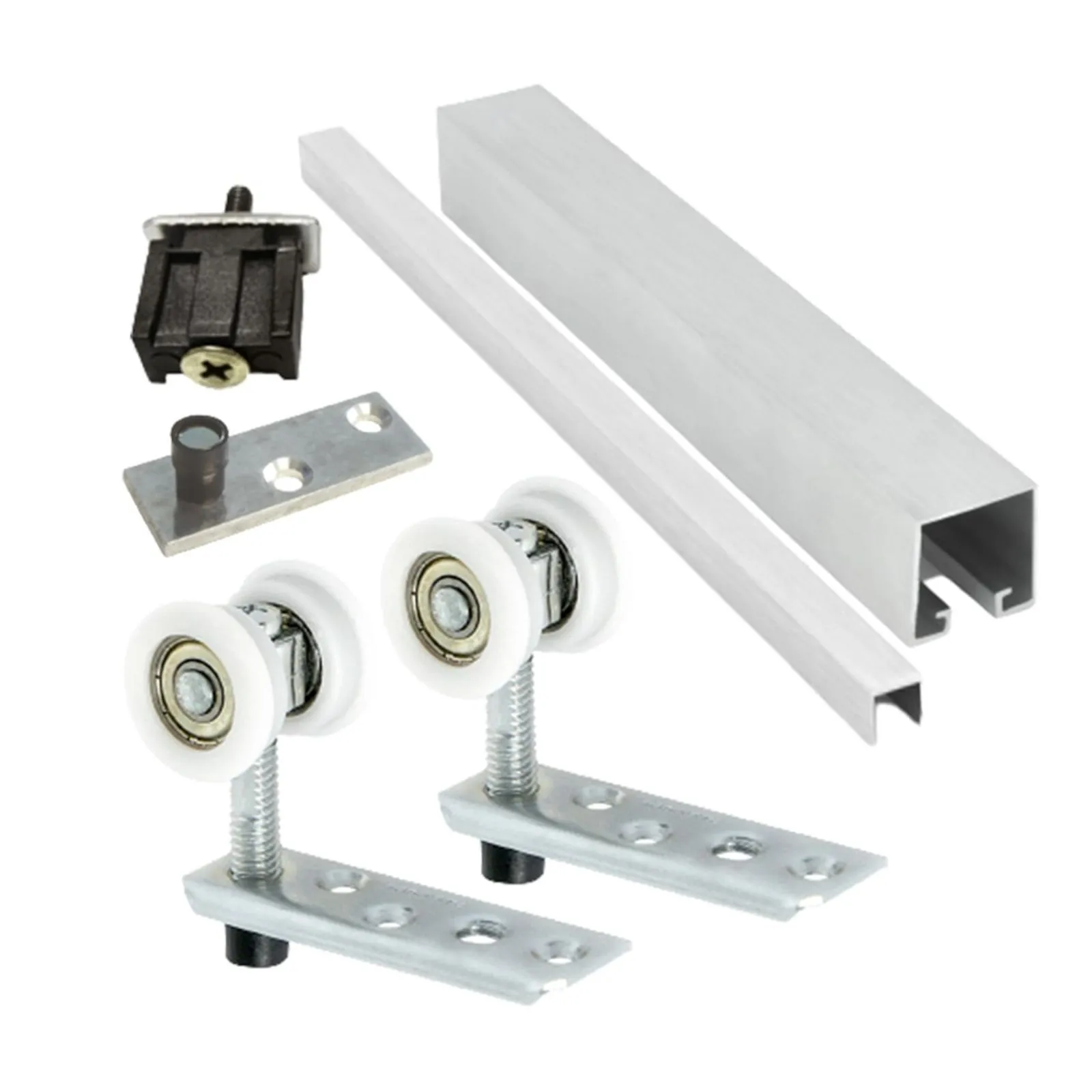Kit para Porta de Correr de Madeira Até 50Kg 2m Alumínio Polido
